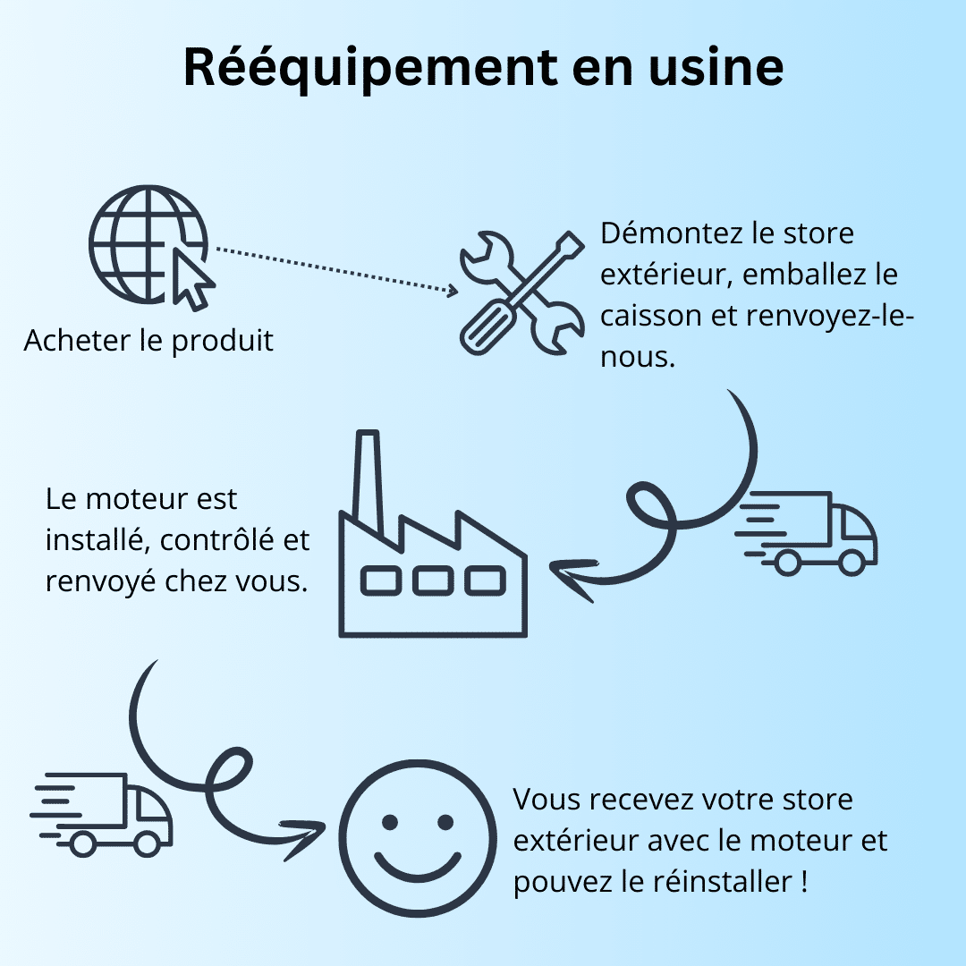 - Tu nous envoies ton store extérieur et nous installons le moteur.