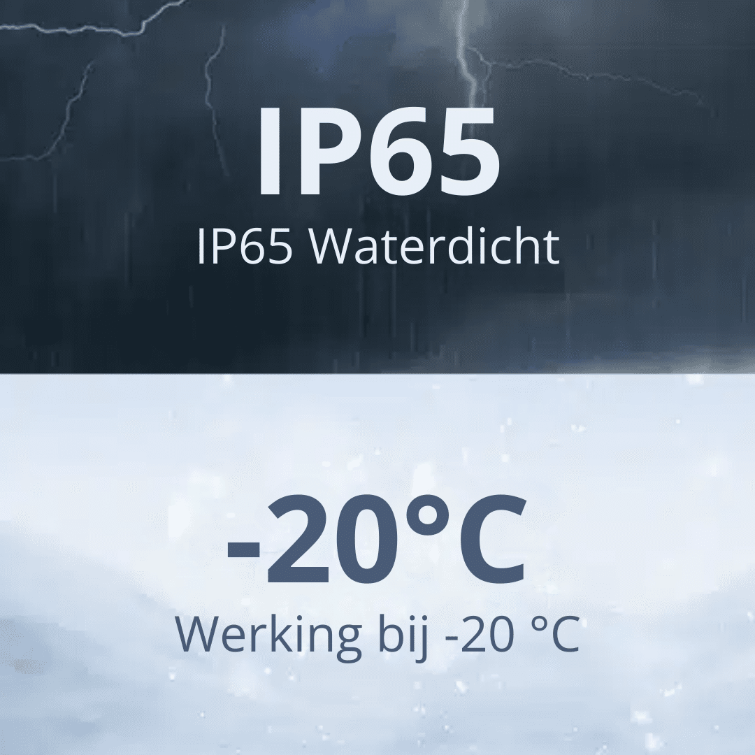 Beschermingsklasse: IP65 - stof- en spatwaterdicht